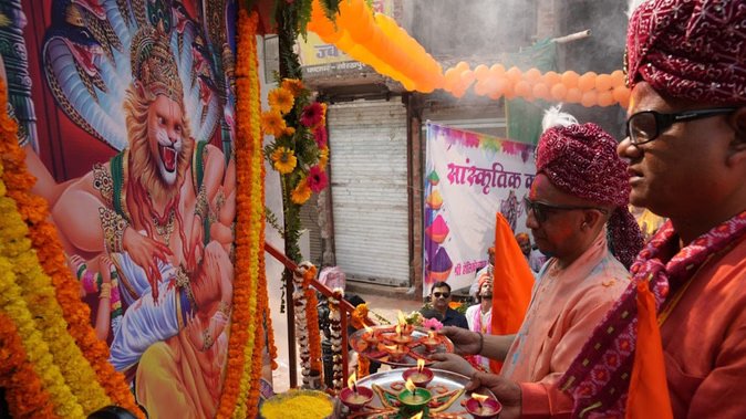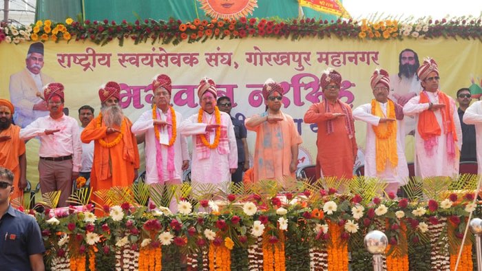 गोरखपुर: उत्तर प्रदेश के मुख्यमंत्री एवं गोरक्षपीठाधीश्वर योगी आदित्यनाथ ने कहा है कि मानव जीवन में मर्यादा, जीवंतता, भक्ति और समरसता ही सनातन धर्म की वास्तविक शक्ति हैं। उन्होंने प्रदेशवासियों को इस बात पर गर्व करने का आह्वान किया कि उत्तर प्रदेश में ऐसे सभी प्रमुख विरासत स्थल मौजूद हैं जो इन मूल्यों का प्रतिनिधित्व करते हैं। मुख्यमंत्री योगी आदित्यनाथ बुधवार को होली के पावन अवसर पर घंटाघर से राष्ट्रीय स्वयंसेवक संघ और होलिकोत्सव समिति द्वारा आयोजित “भगवान नृसिंह की रंगभरी शोभायात्रा” के शुभारंभ के अवसर पर विशाल जनसमूह को संबोधित कर रहे थे।