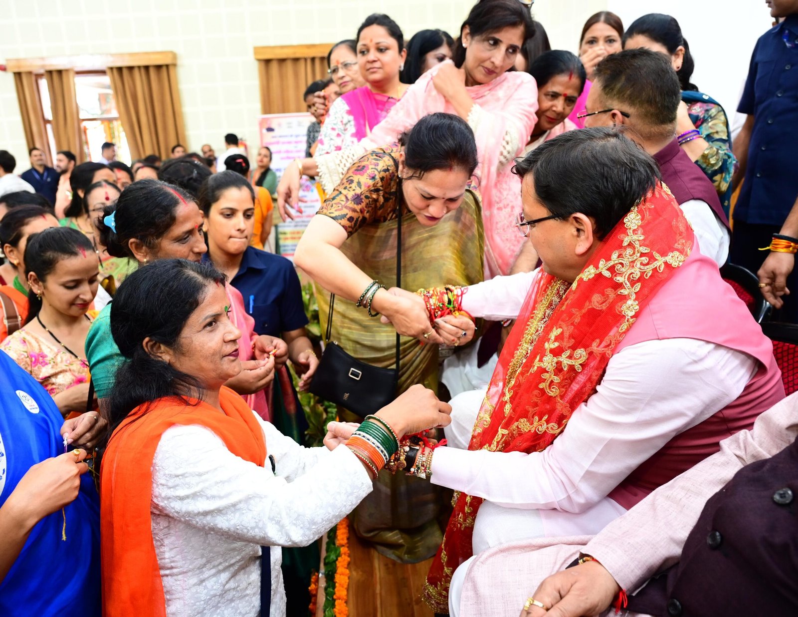 इस अवसर पर मुख्यमंत्री पुष्कर सिंह धामी ने सभी को रक्षाबंधन की शुभकामनाएं देते हुए कहा कि यह पर्व हमें हमारे सामाजिक कर्तव्यों का भी बोध कराता है। उन्होंने कहा कि हमारी सरकार मातृशक्ति के उत्थान एवं कल्याण के लिए संकल्पित है। मुख्यमंत्री ने कहा कि हमारा प्रयास है प्रदेश के विकास में हर कदम पर महिलाओं की भागीदारी सुनिश्चित करें। राज्य सरकार द्वारा महिलाओं को सरकारी नौकरियों में 30 प्रतिशत का आरक्षण प्रदान किया जा रहा है।