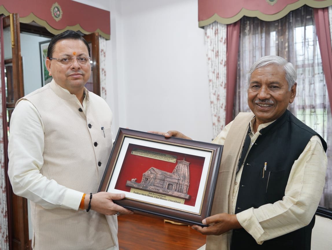 मुख्यमंत्री पुष्कर सिंह धामी से गुरुवार को मुख्यमंत्री आवास में लोक गीतकार नरेन्द्र सिंह नेगी ने शिष्टाचार भेंट की